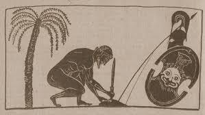 Il dramma, tuttavia, nasce e si consuma quando Aiace riacquista il lume della ragione e l’azione cieca cede alla riflessione e ad un sentimento di tristezza profonda per l’onorabilità perduta. Egli è combattuto tra la scelta di sopravvivere per non lasciare privo d’un padre il caro figlio Eurisace e d’un compagno la cara moglie Tecmessa, che per lui tutto ha lasciato e l’altra scelta possibile, che è quella che lo inquieta molto e che equivale alla scelta della morte, poiché lui non potrebbe sopravvivere alla derisione inflittagli dai due re Atridi; non potrebbe vivere dopo che è stato calpestato il suo onore e offesa la sua dignità. Dunque si darà la morte, poiché un sentimento tipico dell’uomo che sopravvive nel tempo è il debito che ogni individuo ha con la sua comunità e quindi con le sue regole sociali che impongono a ciascuno comportamenti e stili, questi sì, tipici d’ogni epoca storica, e fuori da quei modelli si vivrebbe o da folli o da reprobi. Aiace dunque sceglie la morte suicidandosi con il suo “bottino” di guerra, la spada di Ettore, poiché neanche gli dei sono con lui e gli sono avversi. “Ora che fare? È troppo chiaro che gli dei m’avversano, mi detesta l’esercito dei Greci, e Troia intera a questa piana m’odia…come comparirò, con quale viso, di fronte a Talamone, il padre mio?”[1]